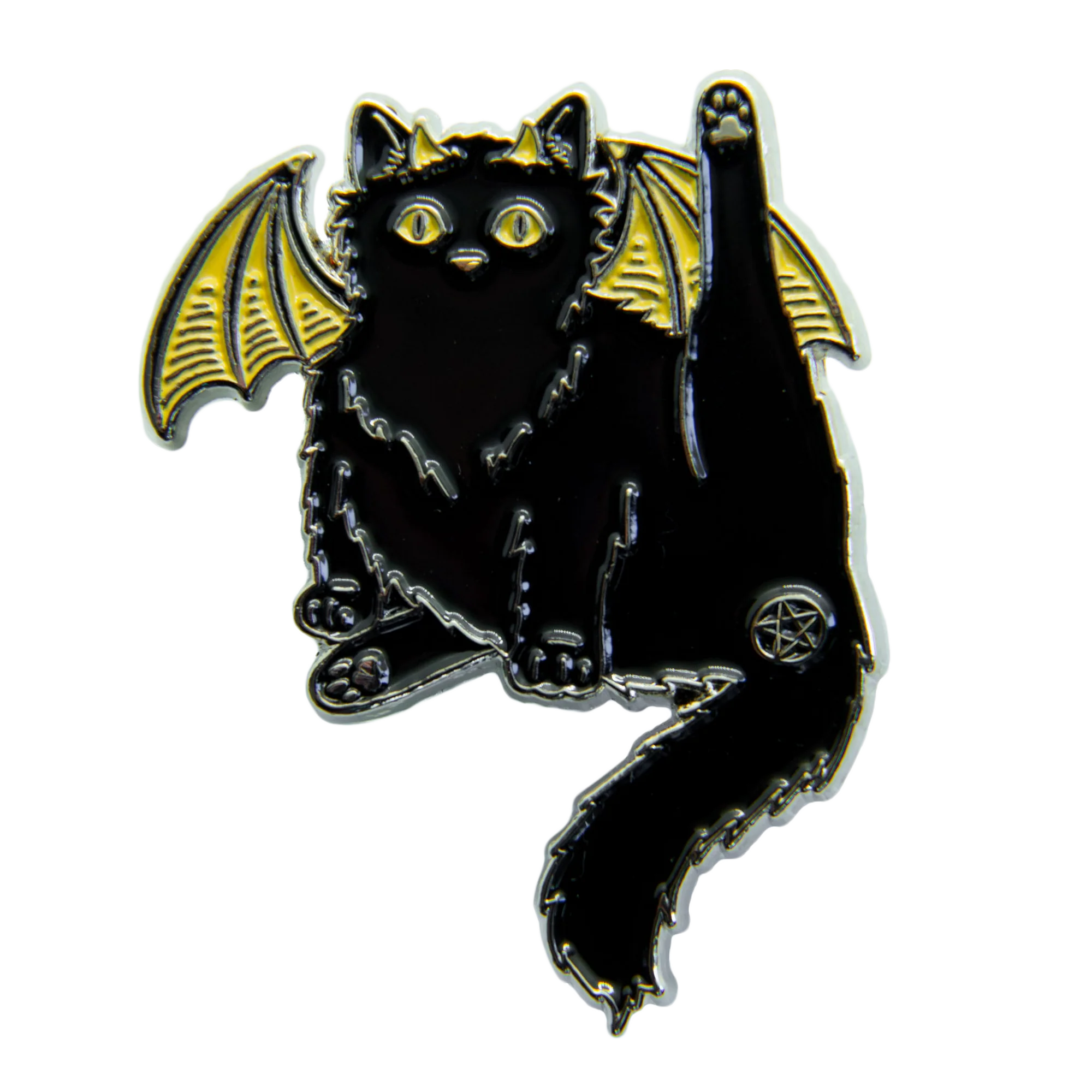 Finished in silver plating with black and yellow enamel, this pin adds feline attitude to any outfit and is guaranteed to spark smiles and conversations. A purr-fect gift for occult lovers, alternative fashion fans, and anyone with a sense of humor.