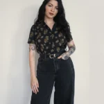 Women’s Vintage Collar Shirt in Moths & Moonflowers